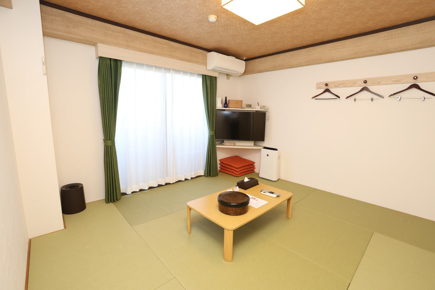 □設備:ユニットバス・ウォシュレット・加湿機付空気清浄機・43インチスマートテレビ(自動履歴消去機能付)・エアコン(個別空調)・電気ケトル・空冷蔵庫・ドライヤー・座卓